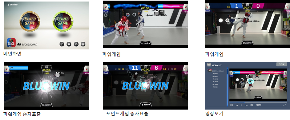 증강현실을 이용한 스코어보드로서 제미타 전자호구와 연결하여 파워게임 및 포인트게임을 할 수 있습니다. 타격시 화면에 에너지 및 점수가 표출되고 겨루기 영상과 혼합되어 자동으로 영상이 저장됩니다. 영상은 영상보기에서 원하는 영상을 선택하여 득점장면 등을 슬로우모션으로 다시보기가 가능합니다. 저장된 영상은 갤러리등에서 다시 보거나 편집 또는 공유가 가능합니다.