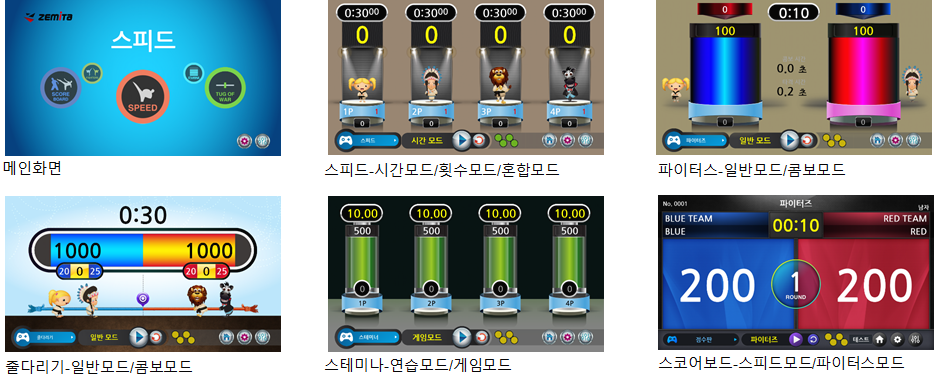 - 스피드: 최대 4인까지 운영가능, 시간모드, 횟수모드, 혼합모드로 운영가능
