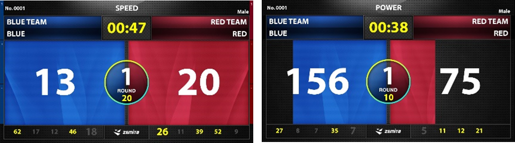 각 호구별 득점인정을 위한 최소강도값을 설정하여 넘어지거나 잡고 흔들었을 경우 득점이 표출되지 않도록 설정이 가능합니다.
