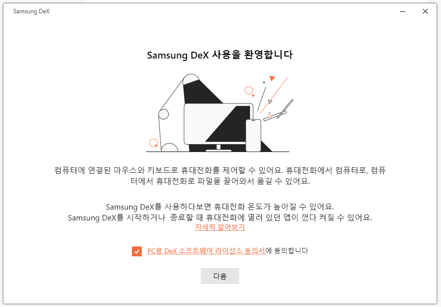 노트북에 삼성 덱스를 사용하기 위해 덱스프로그램을 설치해야 합니다. 아래 링크를 클릭하여 설치하세요.